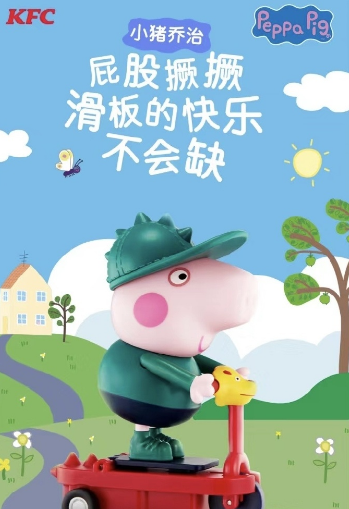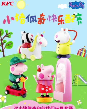 7月2日欢乐上市,来肯德基购买小猪佩奇和伙伴们玩具套餐,即可获得限量玩具一个。(玩具共4款,随机发放,数量有限,随餐发完即止)