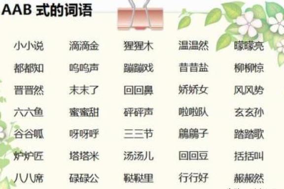 乱腾腾 绿茸茸 绿森森 绿茵茵 绿莹莹 绿油油 慢腾腾 慢吞吞 毛茸茸 毛绒绒